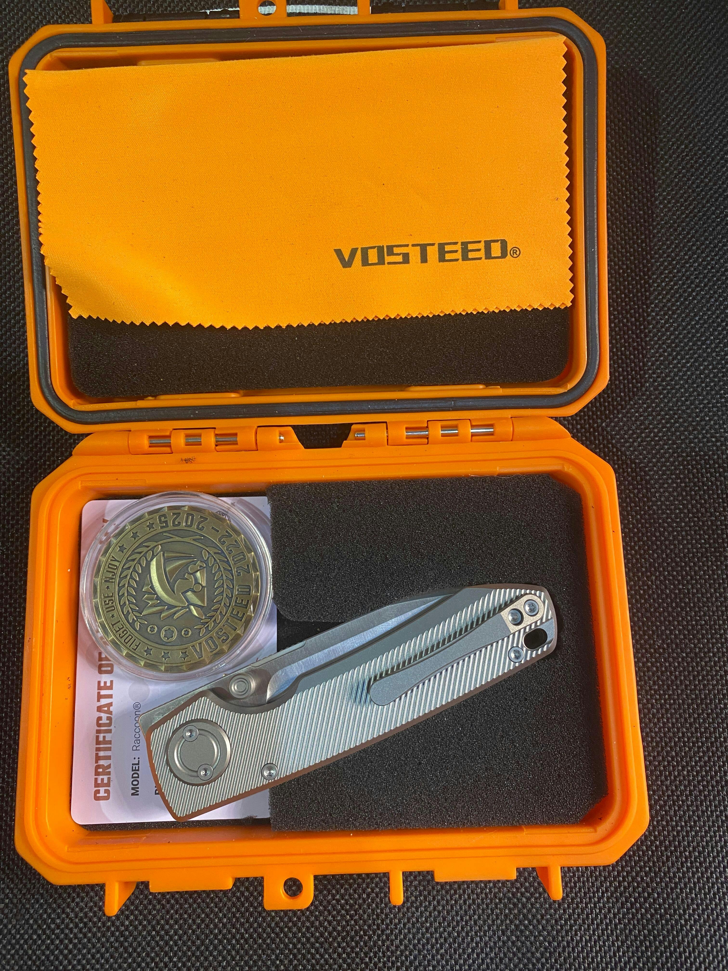 Vosteed Raccoon V Vanchor Lock A4003 - 3.22" M390 Satin Blade, Titanium Handle
